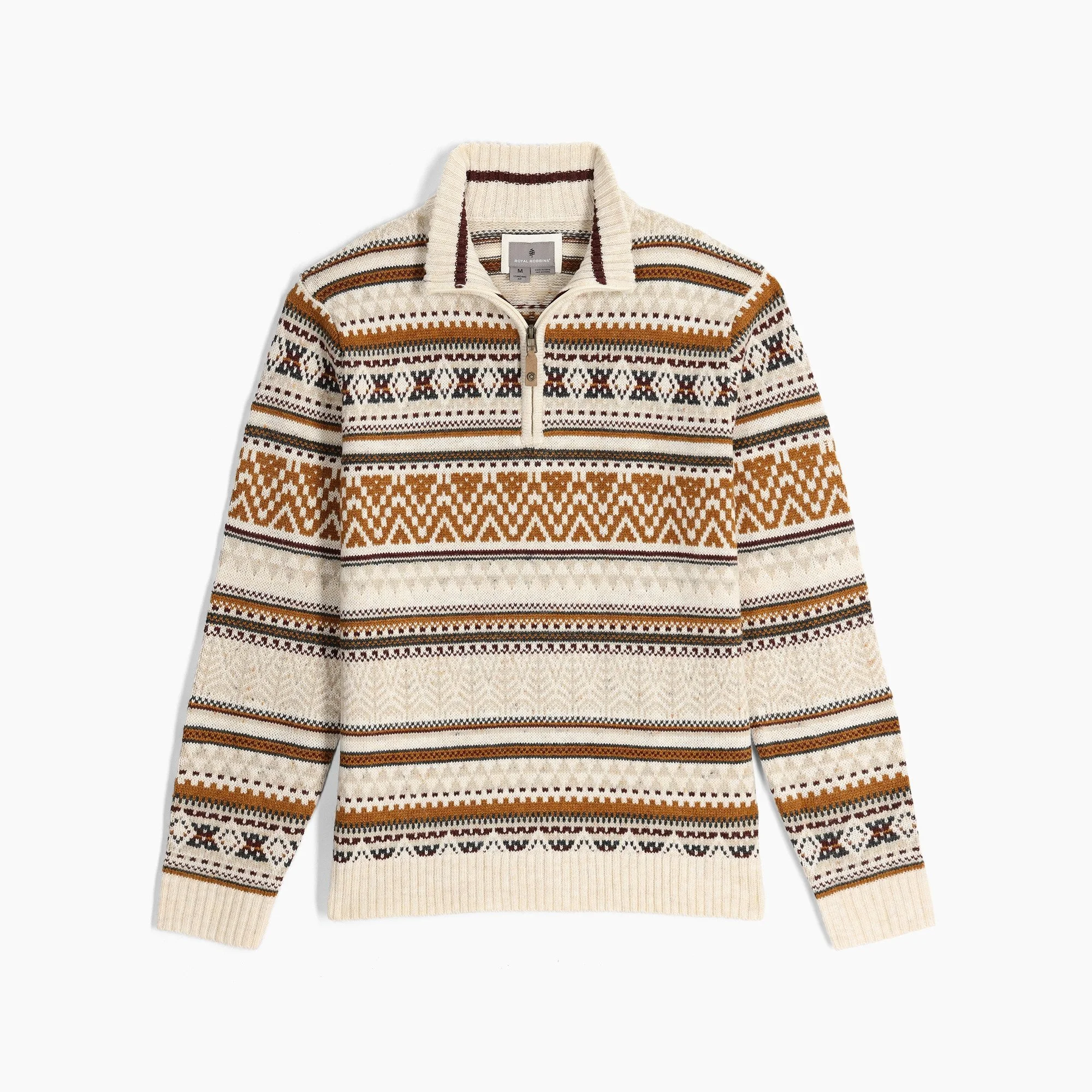 This 1/4 zip sweater is great for cozy mountain nights. Its Fair Isle pattern combines traditional design with the durability, odor resistance, thermoregulation, and quick-dry performance of merino wool.